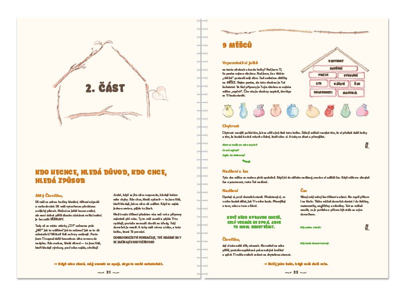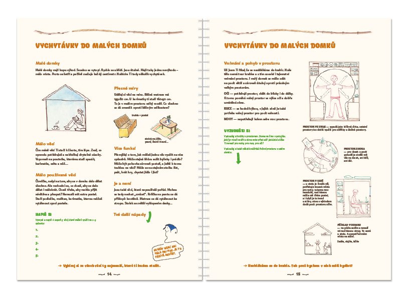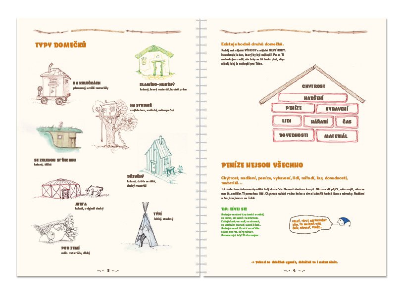 Originální tvořivá kniha pro děti a pro celou rodinu. Kniha Můj domek provází děti tvůrčím procesem vlastního domku, skrýše, doupěte… Kromě toho, že na konci se dostanou ke svému vlastnímu domku, objeví po cestě mnoho užitečných věcí do života. Zažijí tvůrčí proces od vize k hledání možností a následné realizaci. Naučí se myslet od potřebám k věcem a nikoli naopak. V lehké a srozumitelné formě zažijí „vedení projektu“. Díky touze po vlastním domku se mohou naučit nové dovednosti ke stavění, ale taky třeba kreslení, modelování, počítání, komunikaci s dospělými… a na konci je radost z úspěchu, když dokážou svůj domek uskutečnit. Kniha je příležitostí k rodinnému setkání a společnému tvoření. Podle prvních ohlasů může nabídnout inspiraci také dospělákům.